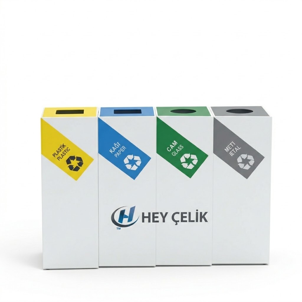 Hey Çelik imzası taşıyan bu sıfır atık kutusu çevre düzenini destekleyen modern bir tasarıma sahiptir. Sağlam çelik yapısı sayesinde dış mekanlarda güvenle kullanılabilir. Belediyeler, kurumsal alanlar, oteller, AVM’ler, fabrikalar ve küçük işletmeler için uygundur.