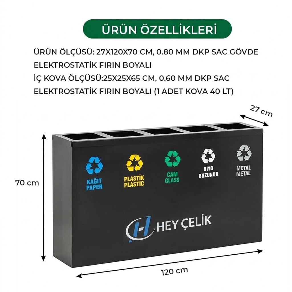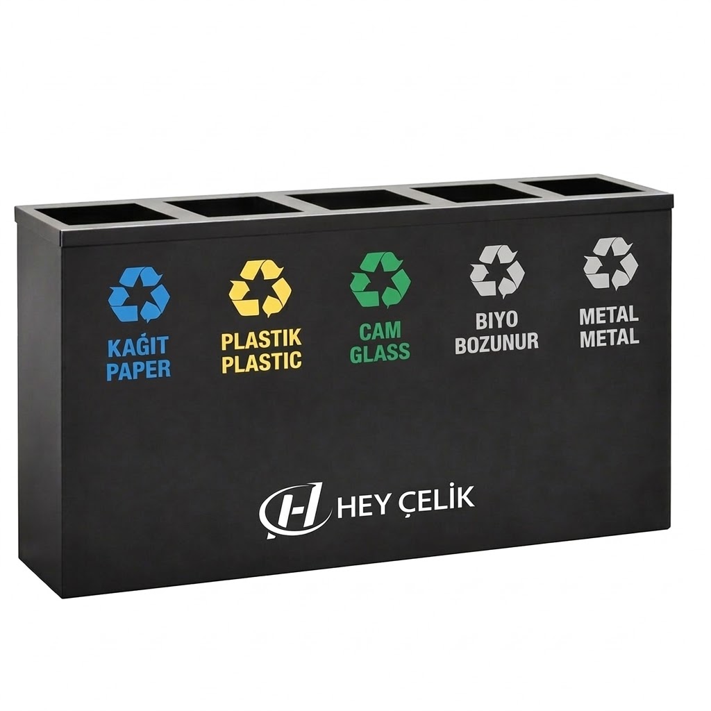 Hey Çelik üretim kalitesi ile hazırlanan bu geri dönüşüm ünitesi çevre düzenini korumak ve atıkların doğru şekilde ayrıştırılmasını sağlamak amacıyla tasarlanmıştır. Sağlam metal yapısı sayesinde yoğun kullanım alanlarında yüksek dayanıklılık sunar. Belediyeler, kurumsal alanlar, oteller, alışveriş merkezleri, fabrikalar ve küçük işletmeler için ideal bir geri dönüşüm çözümüdür.